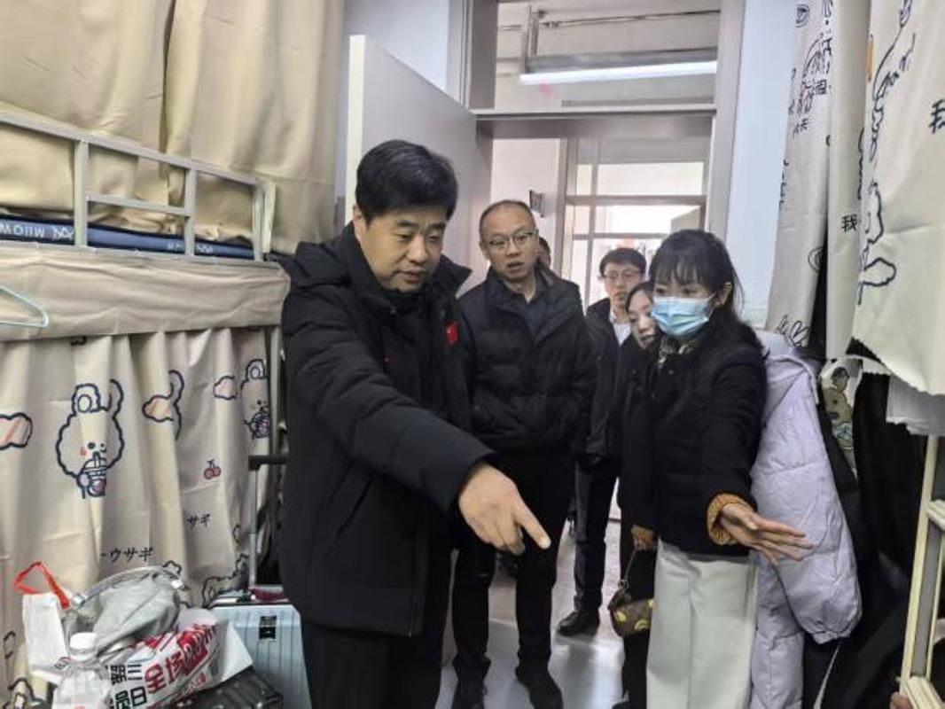 在学生宿舍,认真查看了宿舍环境卫生状况,了解服务人员到位情况,细致排查电气线路安全、消防设施功能;对可能存在的用电风险、设备故障及时维护,确保住宿环境安全无忧。检查过程中,李向阳与返校学生亲切交流,详细询问住宿体验、生活需求及返校后的适应情况,认真倾听学生对宿舍管理、服务保障等方面的意见建议。通过检查、走访,筑牢校园住宿安全防线,传递对学生的关心与关怀,为同学们营造安全、舒心、有温度的住宿环境,助力新学期平稳开局。