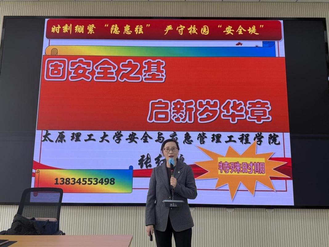 培训邀请太原理工大学安全与应急管理工程学院张红鸽博士授课。张红鸽博士紧扣校园后勤安全工作实际,围绕安全责任、风险防控、隐患治理、应急处置等关键环节,系统阐释“四不伤害”安全准则,深刻阐明安全态度、职业素养、责任担当在岗位实践中的重要意义,引导参训人员树牢“我的安全我负责、校园安全我尽责”的理念。 培训结合典型事故案例,深入剖析校园安全面临的风险挑战,重点讲解消防安全、动火作业管理、火灾分类扑救、灭火器规范使用、火场疏散逃生等实操技能,强化人防、物防、技防能力,实现关口前移,从源头上防范化解校园重大风险和隐患,用“黑色3分钟,生死一瞬间”强化警示震慑,推动安全意识入脑入心。