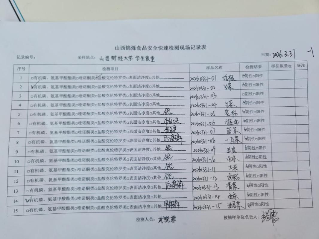 本次活动以“学雷锋月”为契机,以“弘扬雷锋精神 守护食品安全”为主题,结合校园食品的安全风险关键点,运用食品安全快速检测的专业仪器,对学生食堂的食材、食品、餐厨具及师生提供的自购食品进行了检测。检测项目包括蔬菜水果农药残留、熟食亚硝酸盐、食用油品质及餐具洁净度等,检测结果全部达标。检测过程公开透明,现场展示操作步骤与检测结果,吸引了众多师生驻足观看。